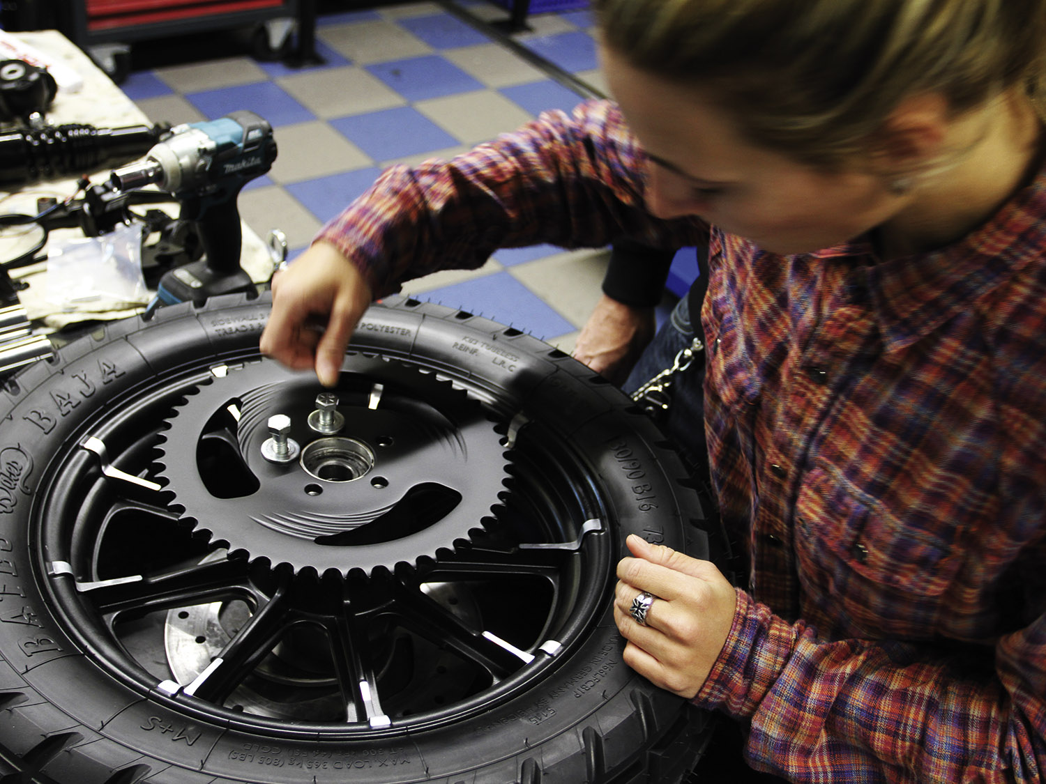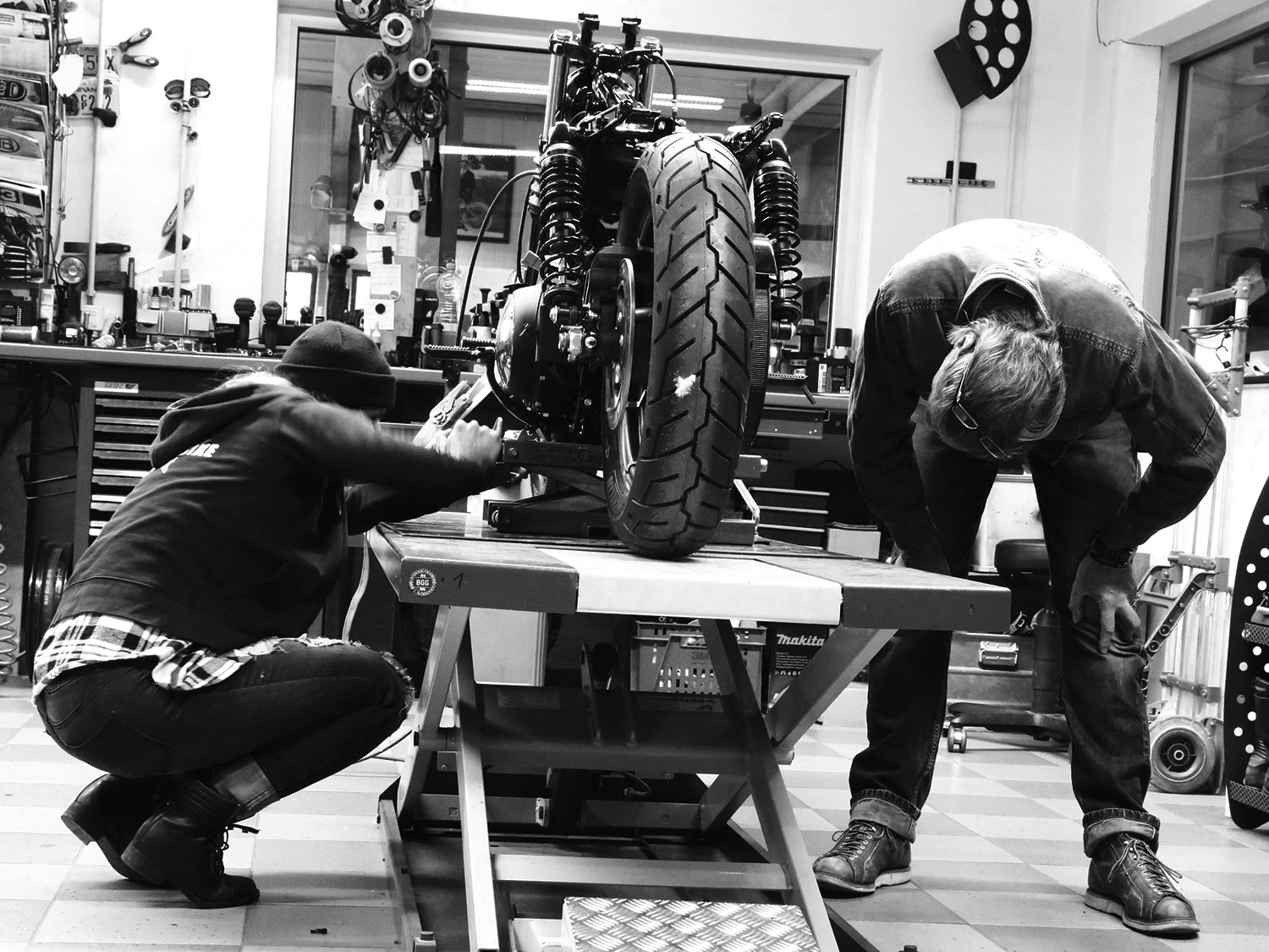 Het sleutelen gebeurt deels tijdens de operationele uren, en deels na het werk. Afhankelijk van wanneer en of de noodzakelijke onderdelen beschikbaar zijn of gewoon als de tijd het toelaat. Een compleet nieuwe ervaring voor Kim, vooral omdat ze bij ‘Thunderbike’ meestal andere taken uitvoert.
