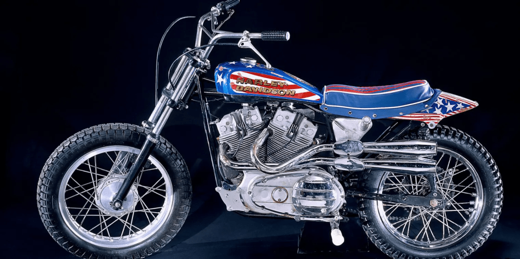 Hoewel de Harley-Davidson XR-750 flat-track racer uit 1970 oorspronkelijk ontworpen was als racemotor, is hij om een heel andere reden beroemd. Degenen die opgroeiden in de jaren zestig en zeventig waren getuige van een gek met een valhelm en een met sterren bezaaide outfit, de tank van zijn fiets geschilderd in de sterren en strepen, en ze zagen deze man vaak over bussen, bruggen en rivieren vliegen, de man was aanwezig bij vrijwel alles waar overheen gesprongen kan worden. De XR-750 is beroemd vanwege Evel Knievel.